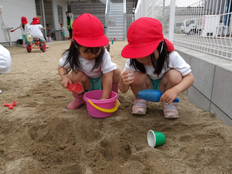 砂場ではお友だちとのケーキ作りが盛りがっていました![]()