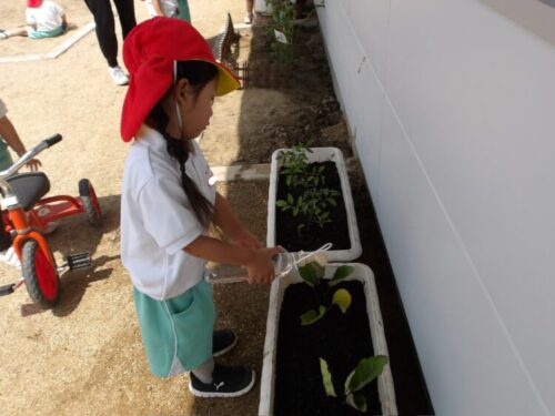 「おみずもあげたほうがいいんじゃない?」という声も上がりカップやバケツに水を汲みお世話をする姿もありました。