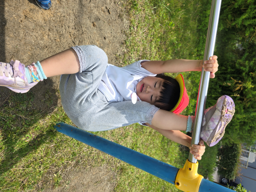 保育者の補助をかりながら自分より高い鉄棒に10秒頑張ってぶら下がってみたり、年長さんが豚の丸焼きポーズやまわるのを見た年少さんも自分もやるー!チャレンジする姿も見られました![]()