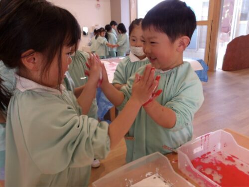 お友だちとお弁当🍱を見せ合いながら