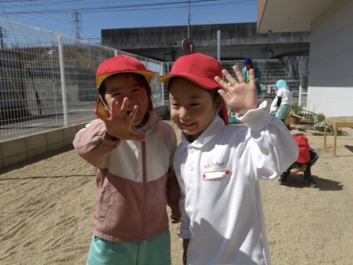 「てるてる坊主のおかげで雨止んだね」喜んでいました🌸😄