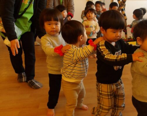 「お友だちと手を繋ごうね」と声を掛けると、手を差し伸べてお友だち同士でペアになれるお友だちもいて、成長が感じられる瞬間でした📸✨