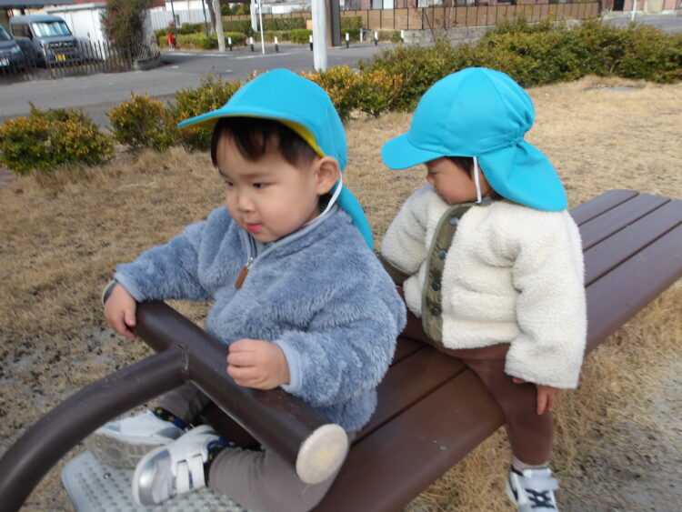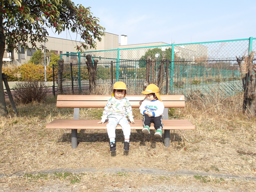 春が近づいてきているようなぽかぽか陽気で気持ち良さそうにベンチでのんびり過ごしたり、葉っぱやハートの形の花びらを集めたりと自由にのんびりと散策して過ごしました💗