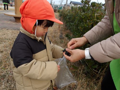 木の実を袋にいっぱい集めて「ママにプレゼントする!🎁」とニコニコで教えてくれたお友だちもいましたよ🌟