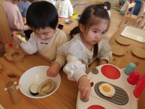 おままごとコーナーでは色々なごはんを作ってくれてご馳走を作ってくれました🍔✨
