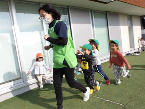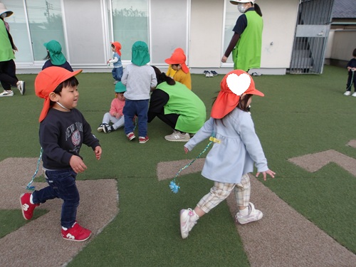 二回戦目は先生たちがしっぽを付けて、子どもたちが追いかけます!!