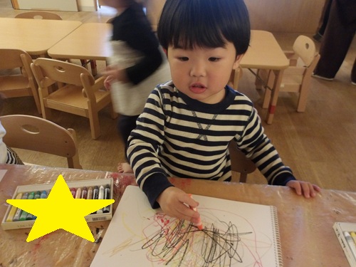 あひる組さんは自分のクレヨンを使ってお絵描きが出来て満足そうにしています😆💗