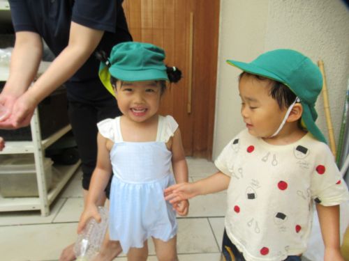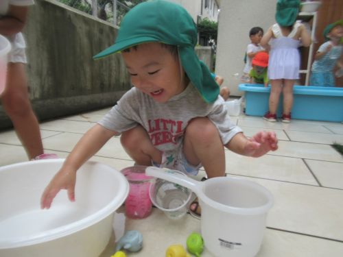 お水遊びを始めて一週間がたちましたが、だんだんみんなもお水遊びに慣れてきて毎日とっても楽しんでいます😄💖
