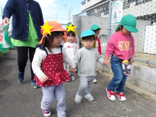 「チューリップかわいいね」と言いながら、みんなで楽しくお散歩しました。