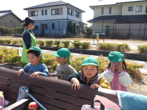 公園に到着すると、あひる組さんはみんなでくれんぼ🎵