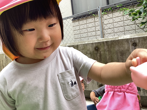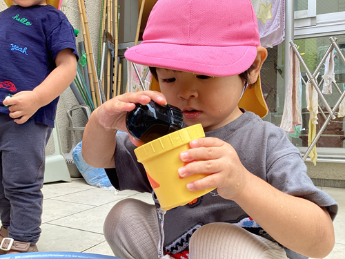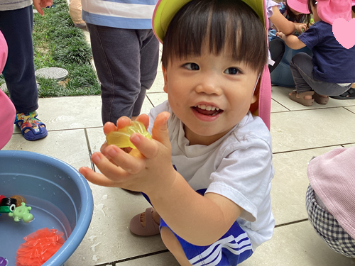 水遊びのイメージをしながらお友だちと水をかけ合っていました![]()