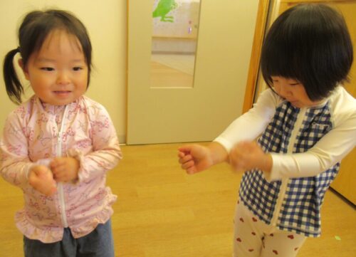 リトミックでは、季節の曲に合わせて身体を動かしたり、