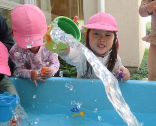 きりん組さんはリトミックの前にプール遊びをしました😊