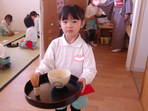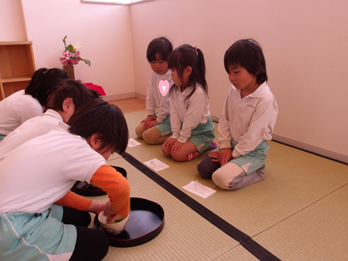 初めての茶の湯で茶菓子やお抹茶に興味津々のぱんだ組さん🤭💖