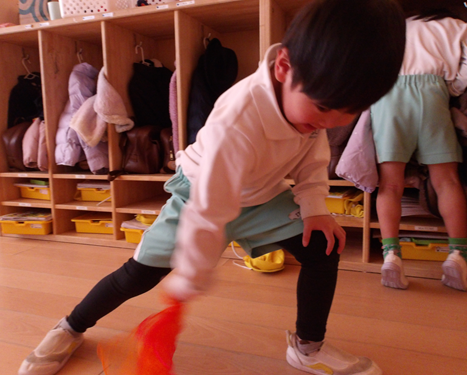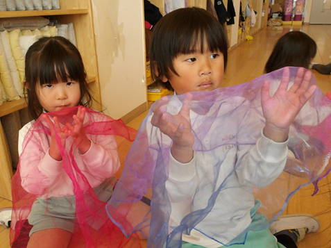 リトミックスカーフをお正月遊びに見立ててリズムに合わせて行いました