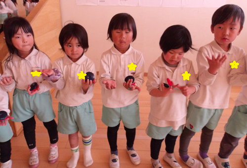 こちらのお友だちは、お餅が膨らんでいるところを表現しています![]()