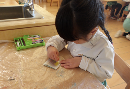 カエルの絵ではないく好きな絵を描いているお友だちもいましたよ![]()