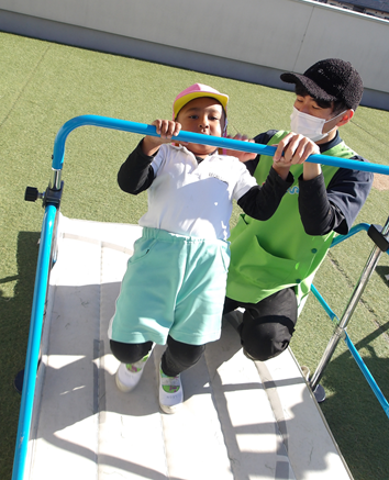 なかよくすべりだいを滑っていました✨