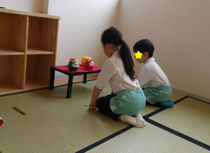 室内あそびでは、かるたやだるまつみで遊んでいるお友だちがいましたよ✨