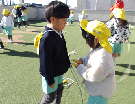 ぱんだ組さんは、二人跳びに挑戦![]()