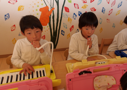 最後は、ピアニカやカスタネット、タンバリンなどの楽器を使って合奏しました😊