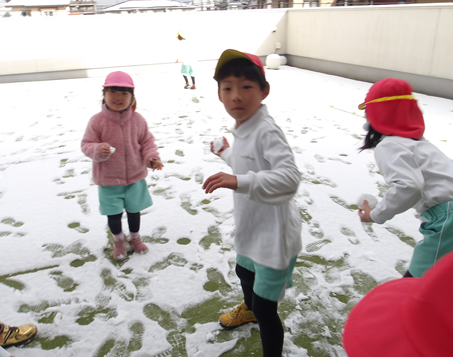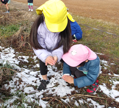 「冷たい!」「雪やわらかいね」「サクサクするよ」などなど感触を楽しんだり、、、少しの時間でしたが雪遊びを楽しむことができました![]()