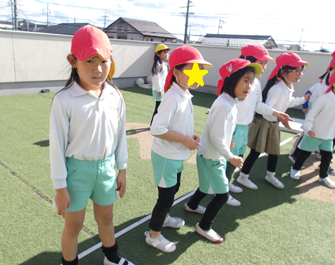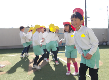 つかまえたあと、「今度は3人で先生つかまえる!」と言って