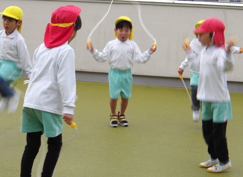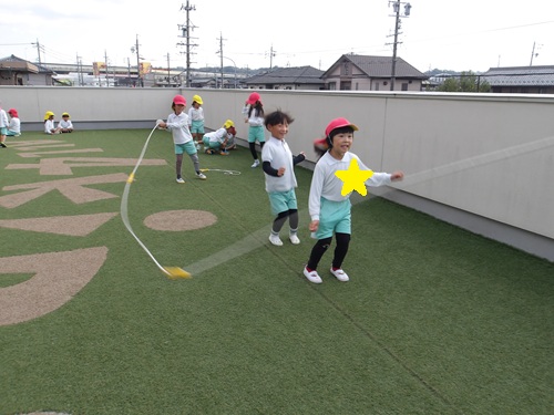 朝一から屋上園庭へ行き、みんなのブームのなわとびをしましたよ