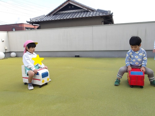 救急車と消防車に乗って嬉しそうにお散歩をしているお友だちもいましたよ🚒