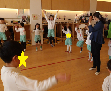 みんなでリズム体操音を聴きどの動きか考えながら楽しんでいましたよ✨✨