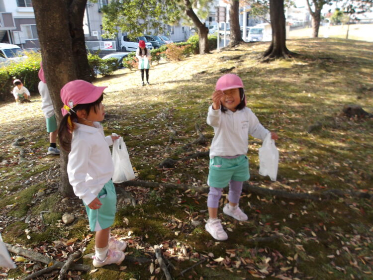 どんぐりや松ぼっくるや鉄棒などみんなで遊びましたよ😊
