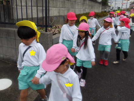 今日はみんなのリクエストで道風公園へ行く予定でしたが、歩いている途中からパラパラと雨が降って来たので保育園に帰ってお部屋で遊ぶことにしました