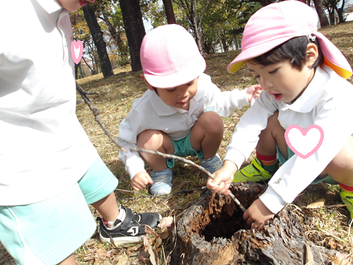 公園内を探検していると朽ちた切り株を発見です🔍✨