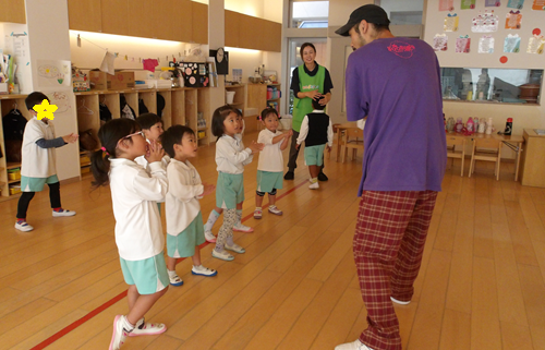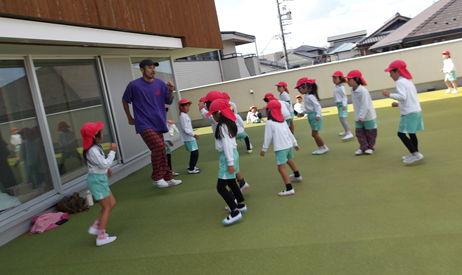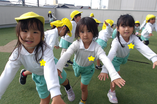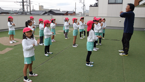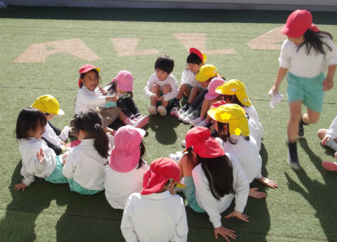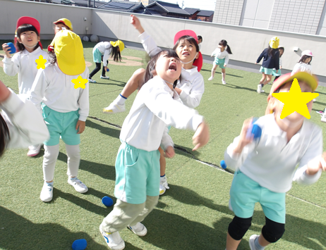 先生がジェリー役になり、みんなは縄が当たらないように逃げるトム役です😊