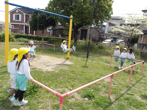 うさぎ組さんは初めてのお散歩でみんなお兄さんやお姉さんたちと手を繋いで上手に歩くことができました❕