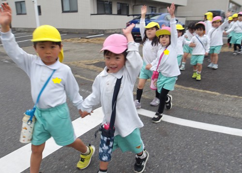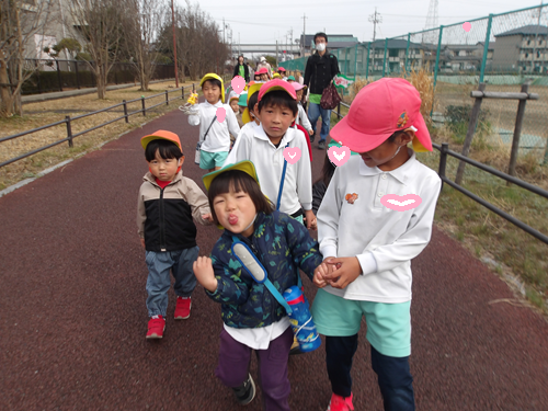 小さいクラスのお友だちと一緒にお散歩に行きましたよ!