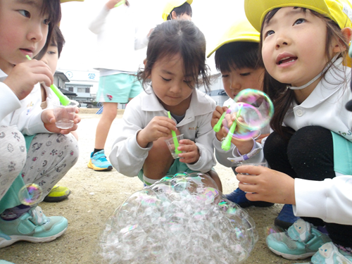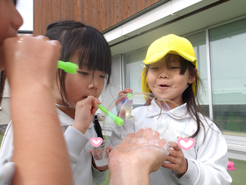 保育園であそんだおともだちは園庭でシャボン玉をしたり、お部屋の中で