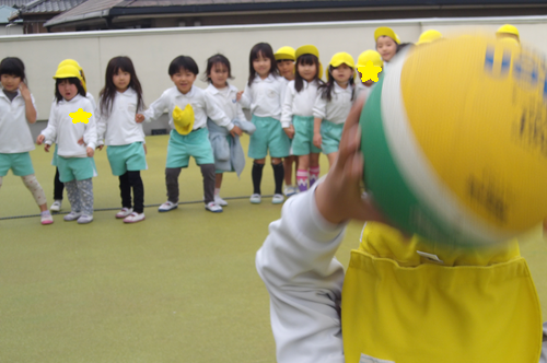 最近うさぎ、ぱんだ組さんもドッチボールの練習をしています