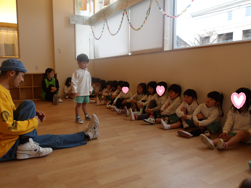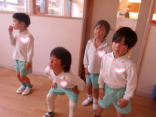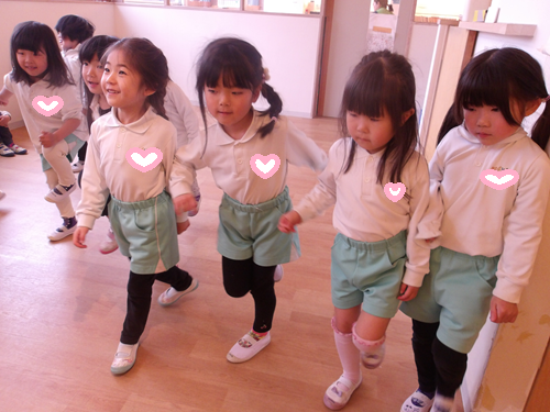 うさぎ組さん、ぱんだ組さんは前回に続きランニングマンを早い曲に合わせて…