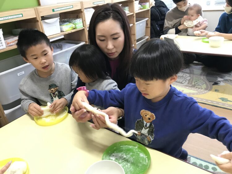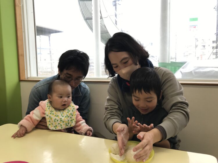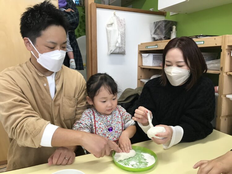 親子でお餅をコネコネしながら・・・