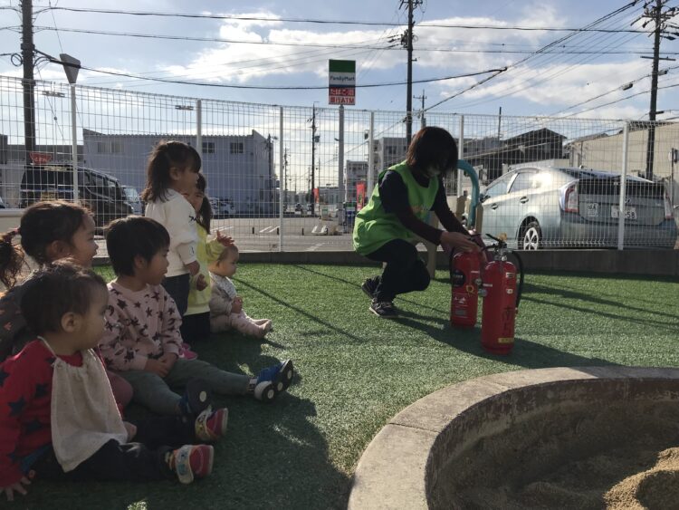 避難訓練、消火訓練を行いました。