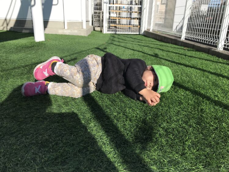 芝生の上は 気持ちいいね![]()