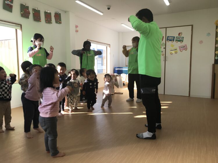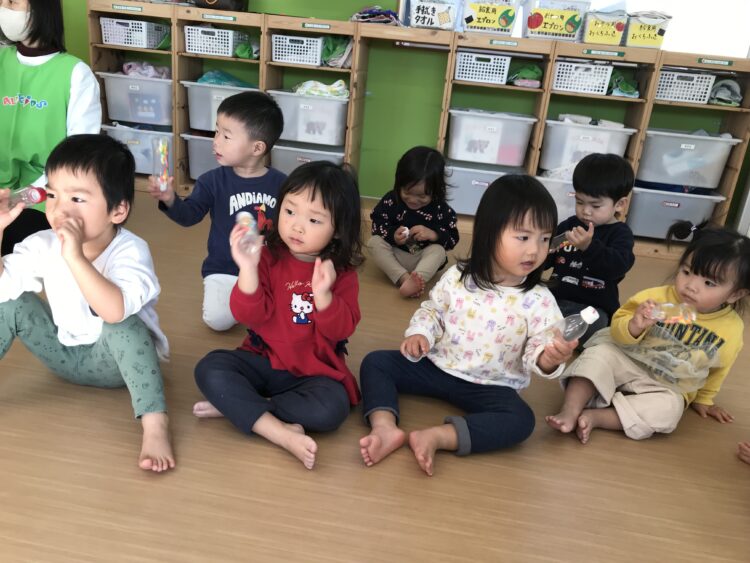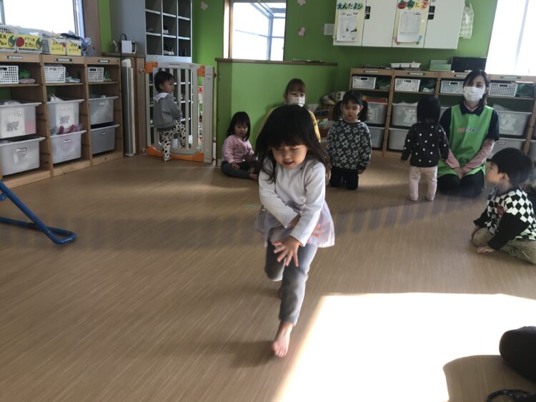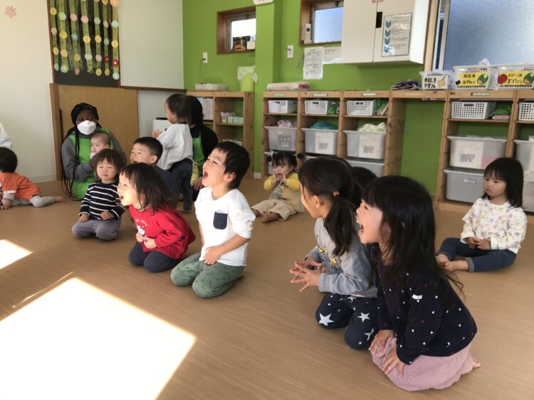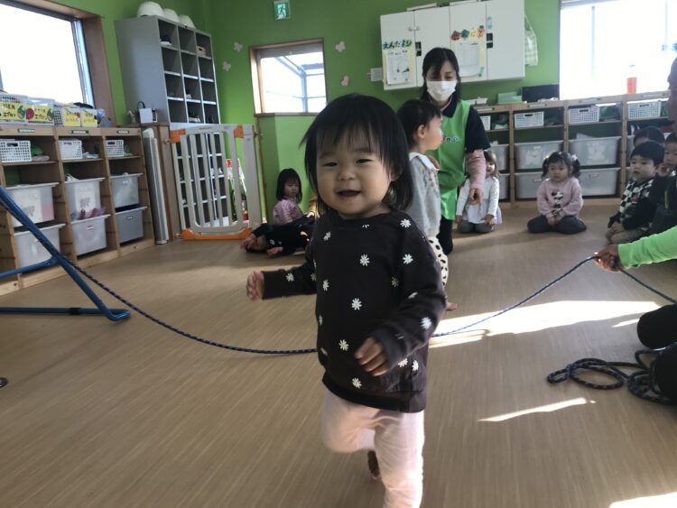 小さい子が大きい子の真似をして色んな事が出来るようになったり、おしゃべりが上手になったりと お互いの相乗効果をあげています。