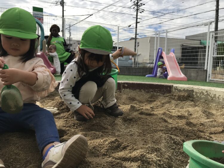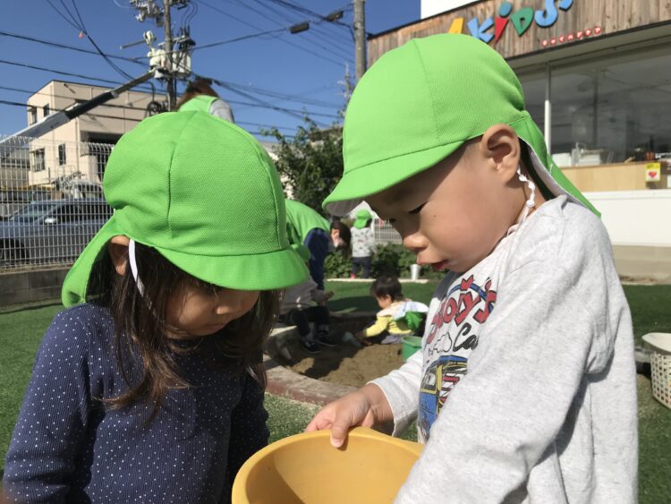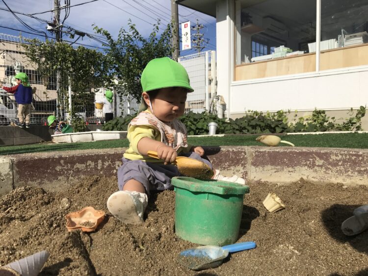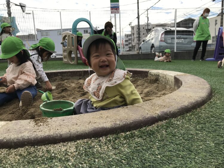 0歳さんもこんなに上手にお砂遊びができるようになりました。