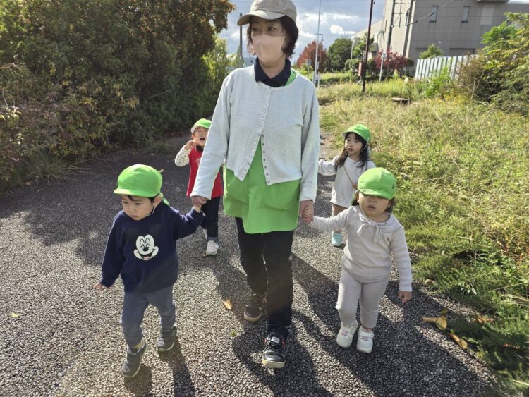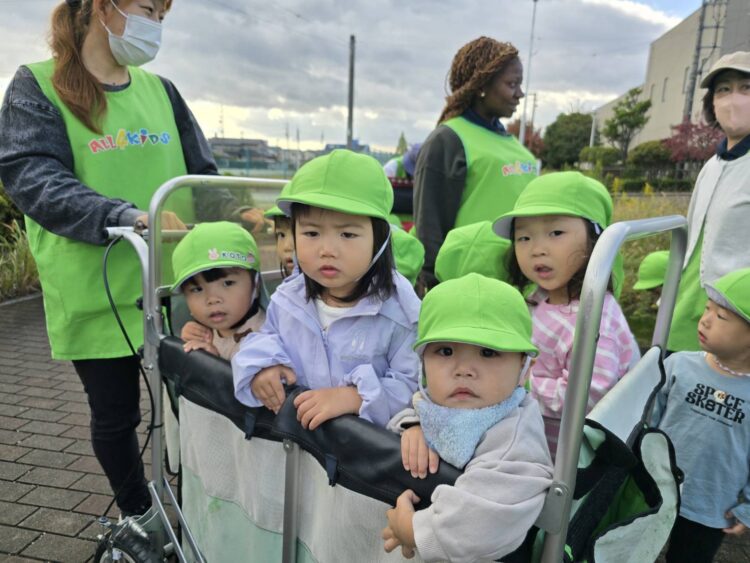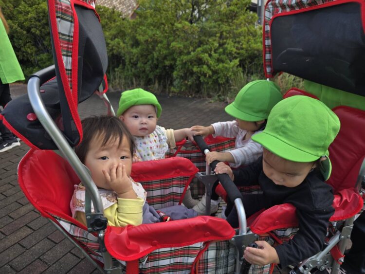 ほし組さん、にじ組さんは ピカピカになったお散歩カーで