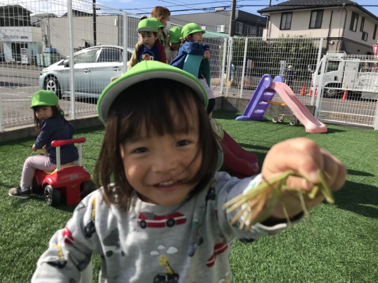少し園庭で遊ぶことができない間に、子ども達のお目当ての果実が色付き、みんな夢中に収穫です。
