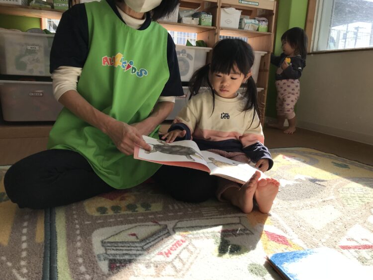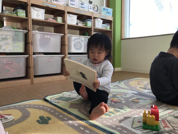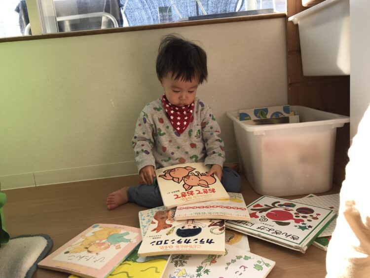 「よんで~!」と、保育士のところにお気に入りの絵本を持ってきて・・・。