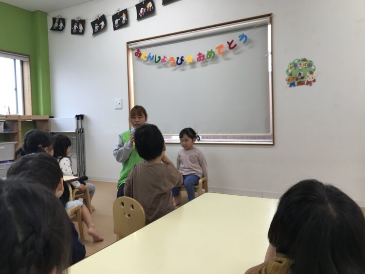 先週の金曜日は10月生まれのお誕生日会がありました🎂 インタビューも上手に答えてくれました😊 最後はみんなでケーキ🎂