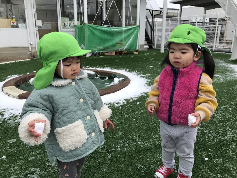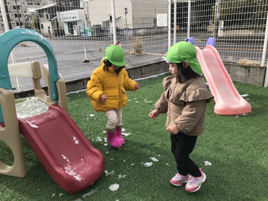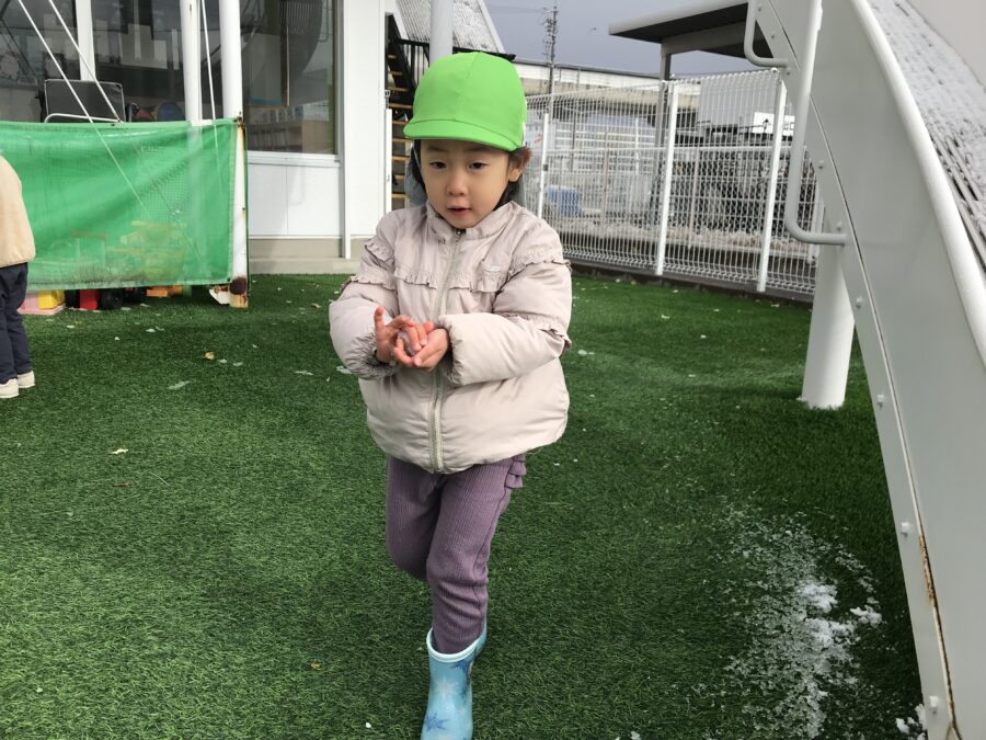雪の合間を見て園庭で少しだけ