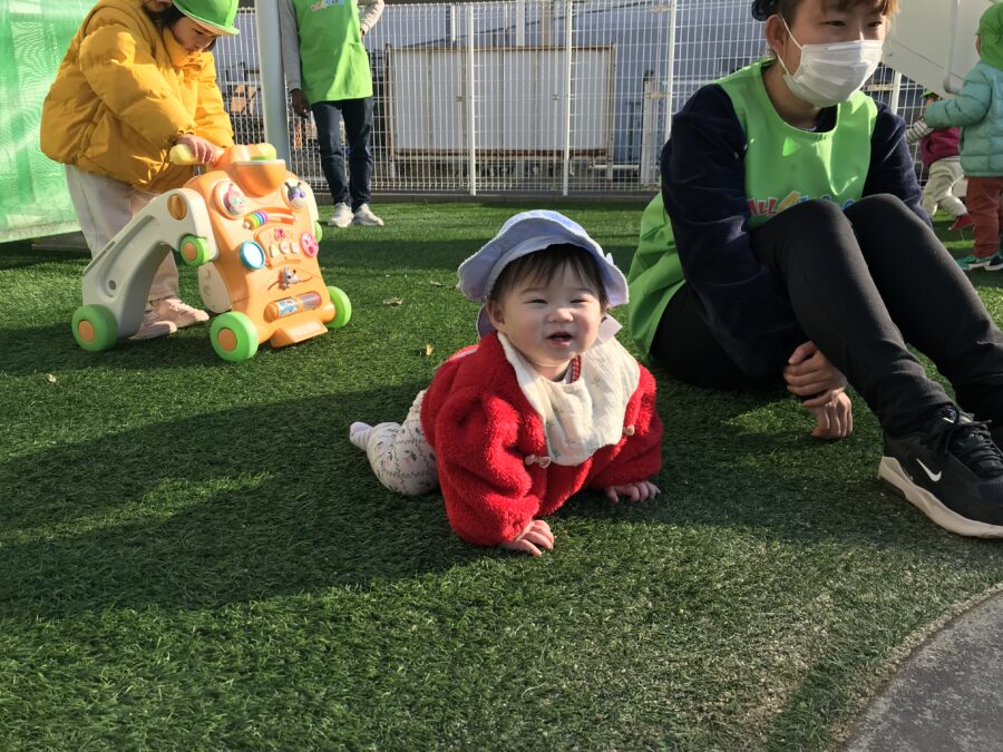 2歳児さんみんなで かけっこをしたり、かくれんぼを楽しんでいます。